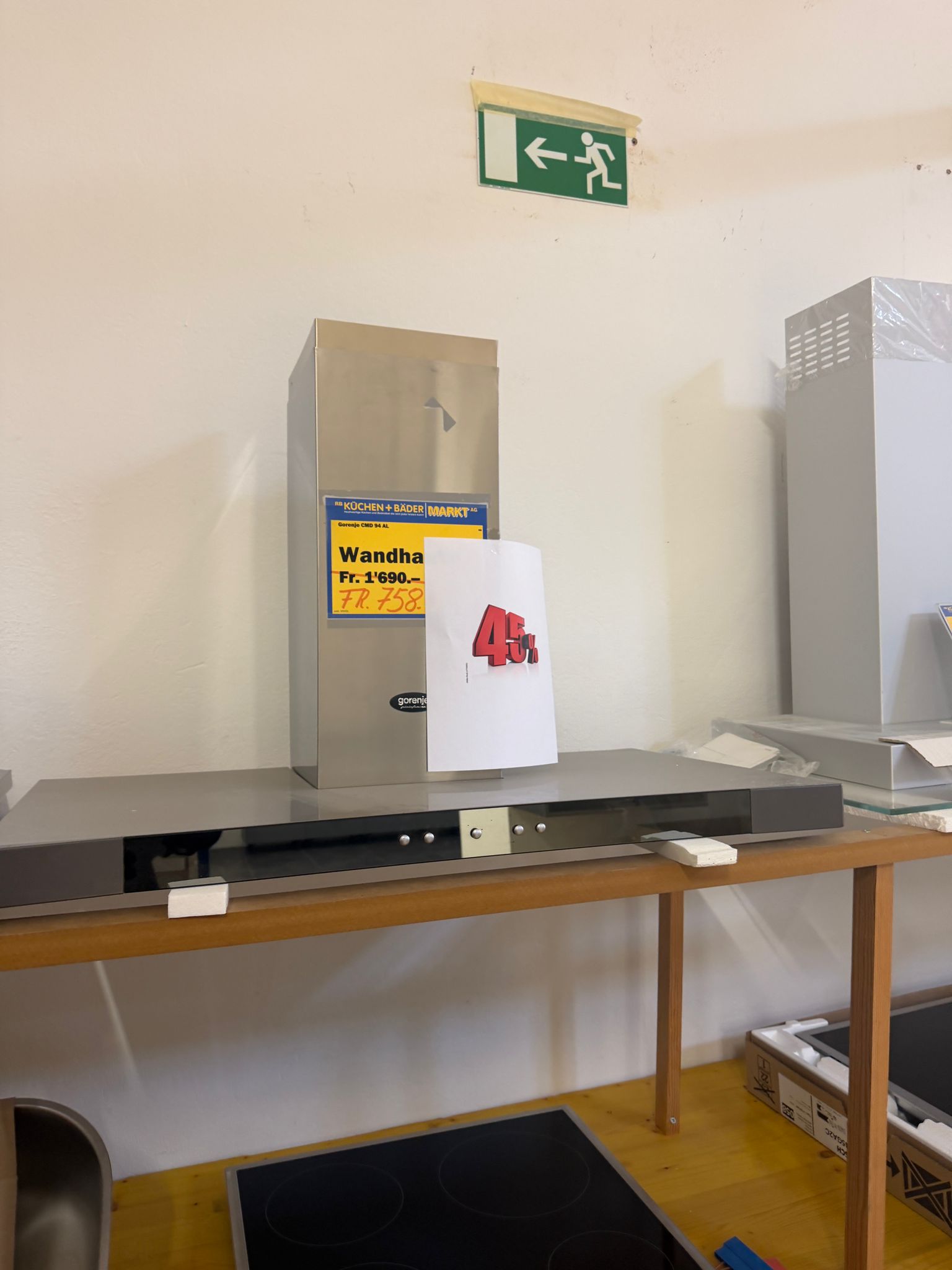 Hinweis: Auf dem Preisschild des Geschäfts steht zwar die Modellbezeichnung „CMD 94 AL“ (ähnlich wie bei den vorherigen Candy-Modellen), das Logo auf dem Kaminschacht zeigt aber eindeutig, dass es sich hierbei um ein Markengerät von Gorenje handelt.