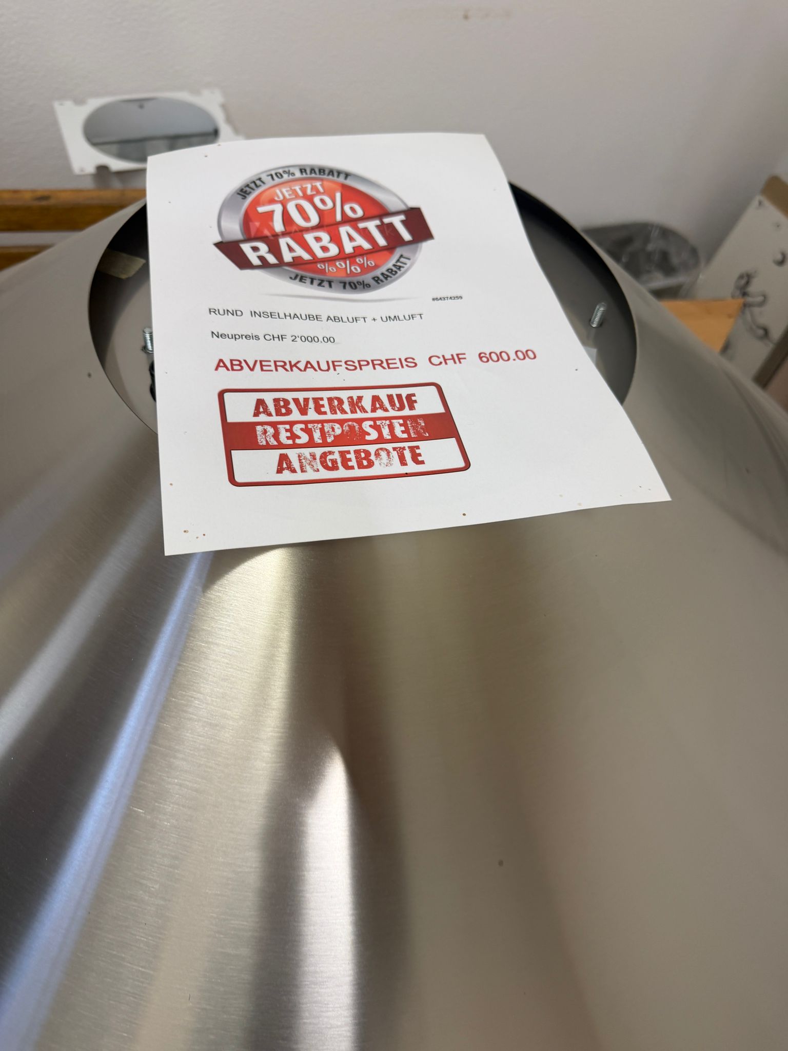 (Wichtiger Hinweis: Bei diesem Restposten-Gerät ist der obere Kaminschacht bzw. die Deckenhalterung nicht im Bild zu sehen. Bitte prüfen Sie die Montagemöglichkeiten für Ihre individuelle Küchensituation.)